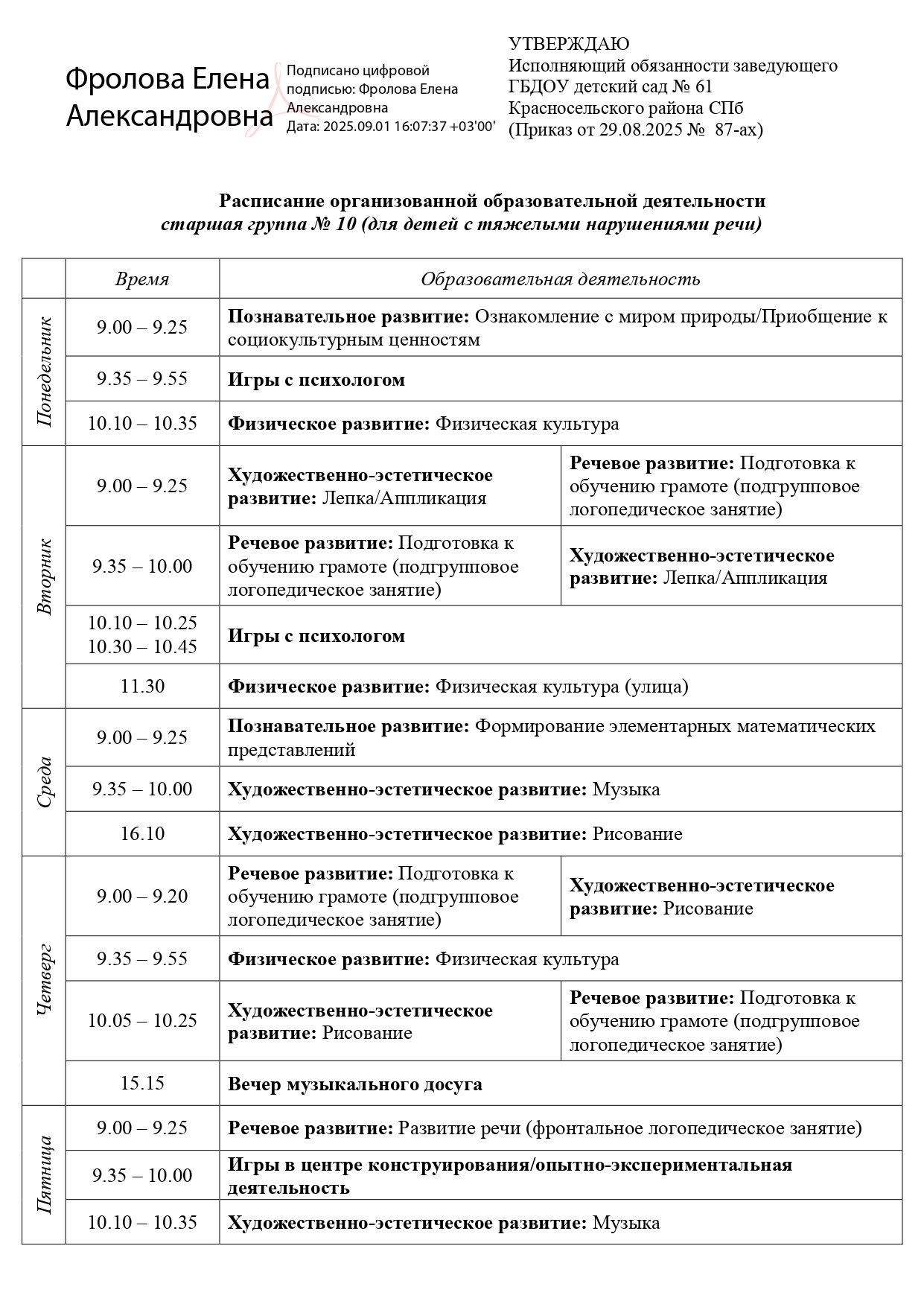 Расписание занятий |